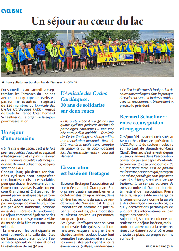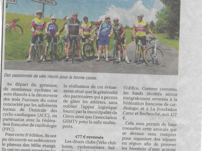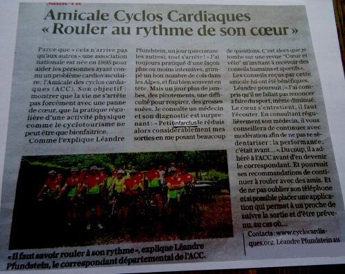 Cependant une petite rectification, notre association porte le nom de l'Amicale des Cyclos Cardiaques, Cœur & Vélo c'est le bulletin trimestriel gratuit que je réalise pour nos adhérents.