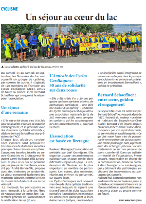 Article de presse relatant le séjour des cyclos cardiaques à Decize (58) - Juin 2024