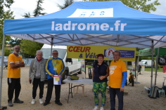 A ma droite en gris Jean-Pierre Granier Président du Codep Drôme et 2 bénévoles du Drôme Bike Festival.